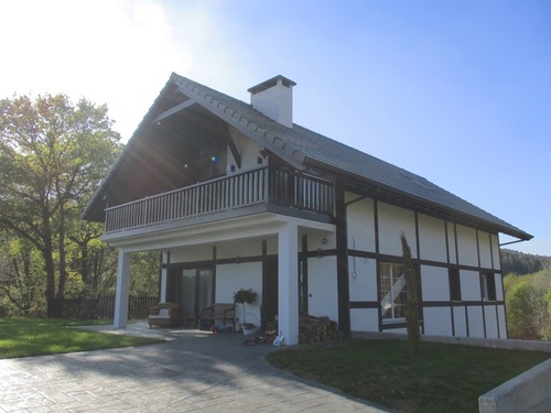 EJECUCIÓN DE VIVIENDA UNIFAMILIAR EN MUNGIA Vivienda situada en la zona de Elordigane en Mungia. Se han ejecutado las obras de construcción de la vivienda además de la urbanización de la parcela que incluía el muro de contención que separa el nivel de la planta baja con el de la planta semisótano. La estructura es de hormigón en planta baja y la estructura de la cubierta es de madera.